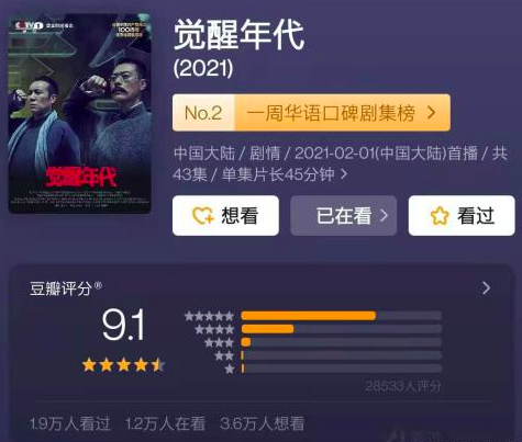 爆火出圈的《觉醒年代》收官,豆瓣评分从开播时的8.3一路涨到9.1,实力演绎“高开炸走”。