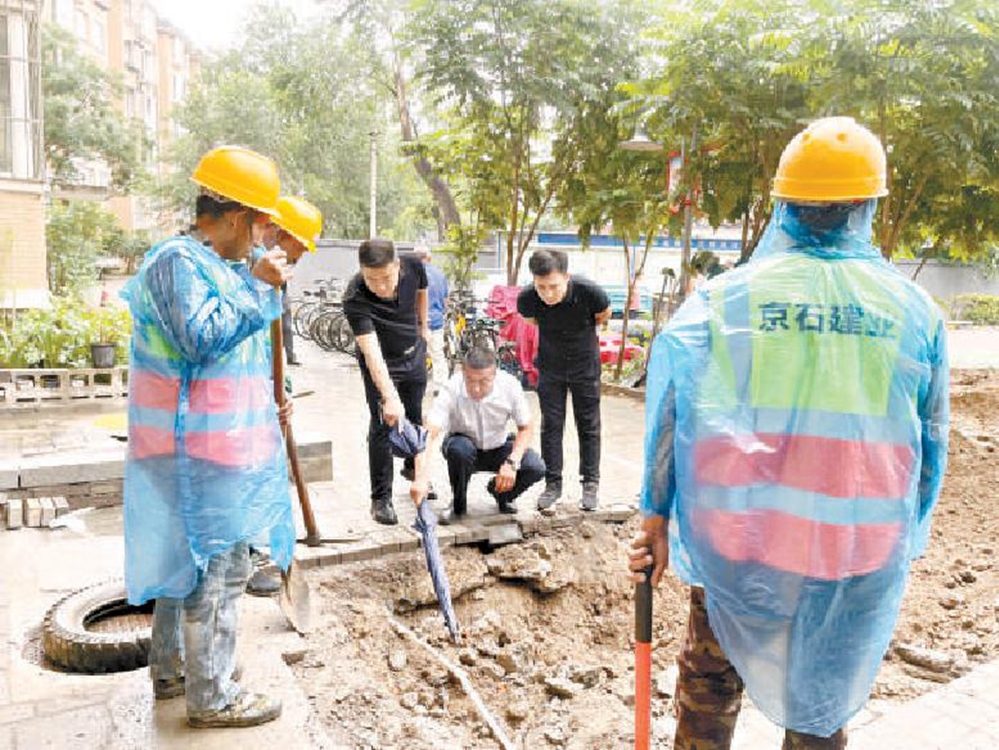 陈雅文立即吹哨求助“一把手进社区”,为了彻底解决问题,街道办事处主任紧急协调有资质的公司进场,京石建业公司主动承接了这个活,第二天就进小区检查整栋楼的污水管道。挖开路面后发现污水管道断裂,只能重新换管。“后来还涉及到其他管道位置调整,都是街道办事处帮我们社区协调的,只在开挖当天断了半天生活用水,十几天就把污水管道换好,污水反流的现象再也没出现。”陈雅文说,此后社区路面提升改造、重新规划车位等问题也都是通过“一把手进社区”机制完成的,“涉及到多个部门,单靠我们社区力量是解决不了的。”