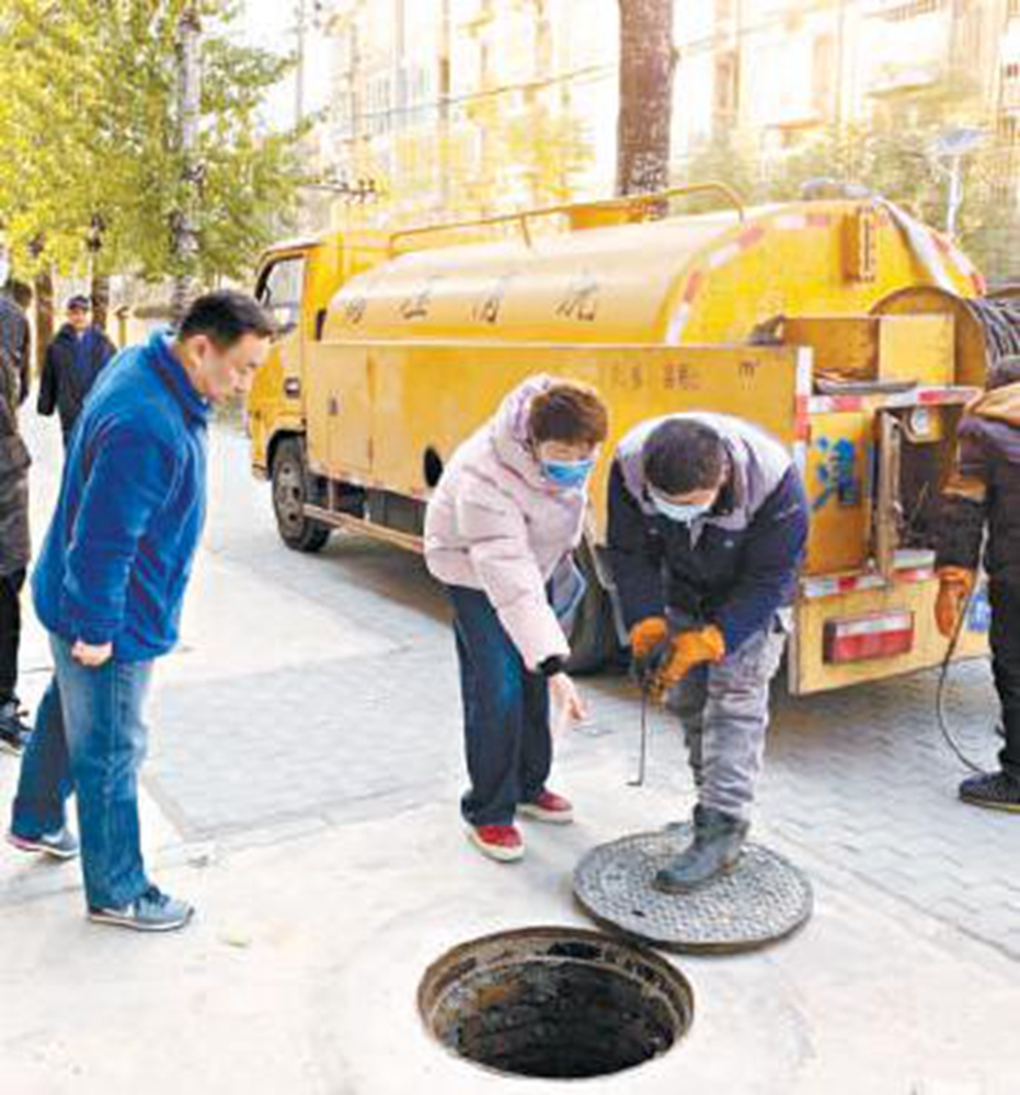 检查西山枫林小区污水管道。