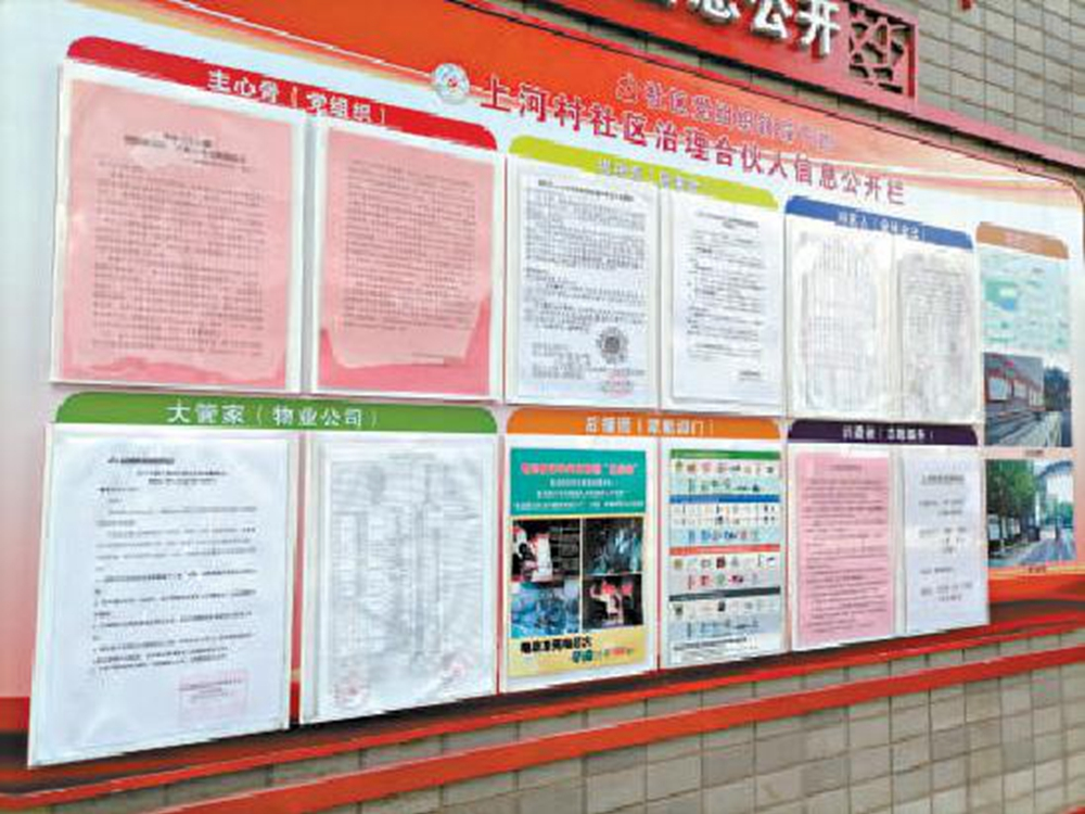 每月15日,六方“合伙人”都会一起召开例会,讨论涉及社区的各项议题。会议纪要都会贴到小区公告栏里,每一方都要张贴各自内容,方便业主们互相印证、互相监督,社区还设有未诉先办小组,社区党支部书记的手机、物业负责人的手机、业委会的电话都公示在显眼位置。经过一年多的努力,上河村社区陆续解决了电梯维修、自供暖锅炉排放超标等积压问题,还在小区内翻修公厕、重新铺设道路、增加了路灯,“这些工作涉及到了热力集团、房管所、派出所……很多都是我们‘后援团’提前介入,积极帮助社区协调解决的。”王颖梅介绍说,之前业主讨论问题时,经常说不上几句话就要摔杯子走人,要不就是互相怼,如今大家都能心平气和地讨论事情了。
