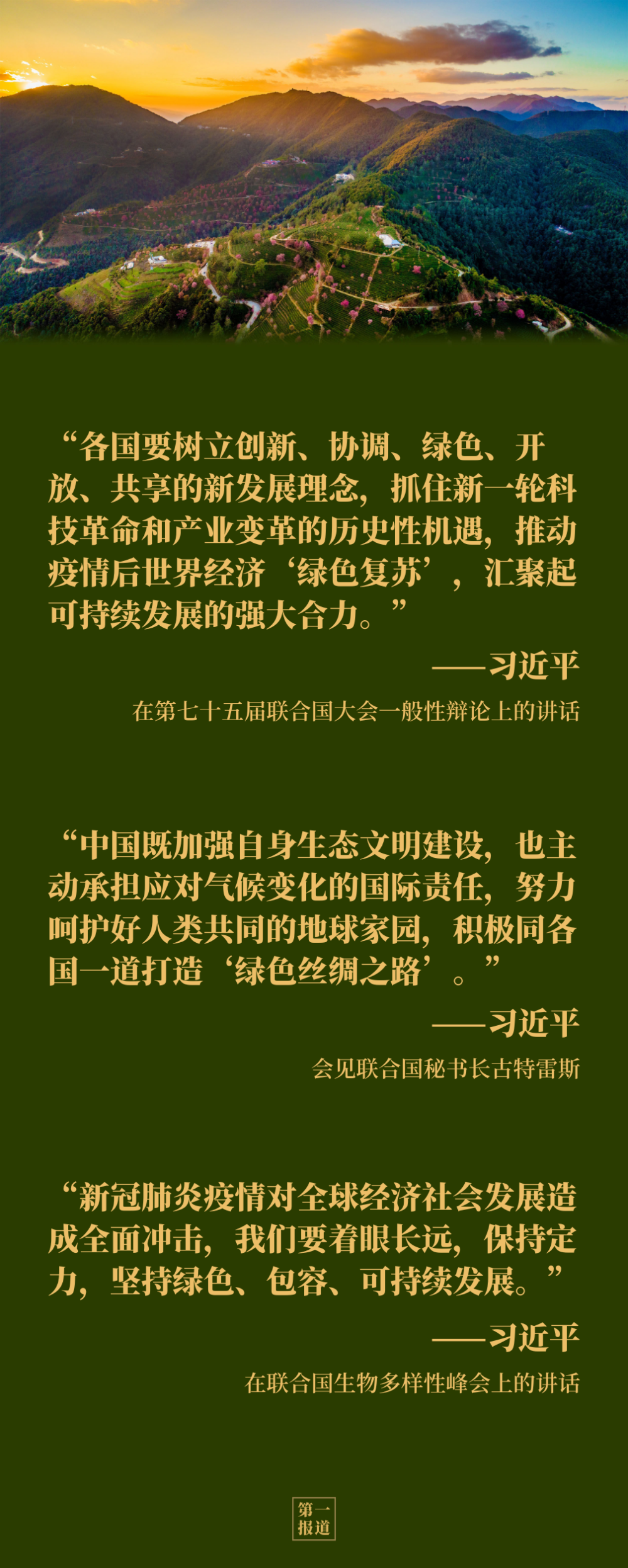 “创新、协调、绿色、开放、共享的新发展理念”“绿色复苏”“绿色丝绸之路”……梳理习主席出席联合国成立75周年系列高级别会议期间一系列重要论述,“绿色”是出现频率最高的关键词之一。