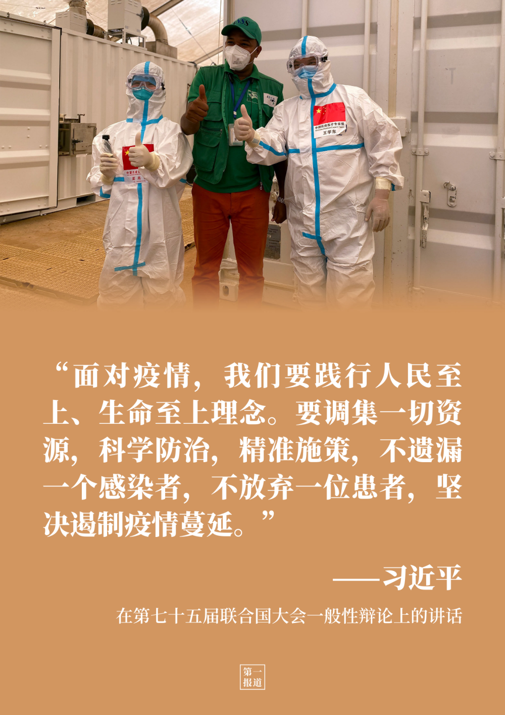 秉持人民至上、生命至上理念,中国在抗击新冠疫情的斗争中取得重大战略成果,也正是从人民至上、生命至上理念出发,中国承担大国责任、展现大国担当,推动国际社会团结抗疫、共克时艰。出席联合国成立75周年系列高级别会议期间,习主席宣布一系列抗疫合作重大举措:
