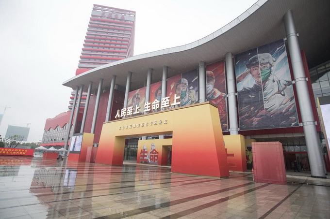 2020年10月15日,由中宣部指导,湖北省委、省政府主办的“人民至上 生命至上”抗击新冠肺炎疫情专题展览开幕式在湖北武汉举行。由人民网设计的5张巨幅海报亮相展览厅入口。人民网 肖璐欣 摄