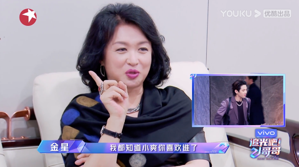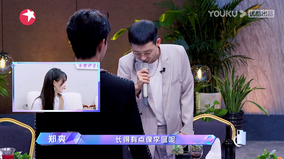 金星和郑爽,她们的初登场方式是在另外一间房间内观看21位男明星入座,仅凭外貌对所有人评头论足。