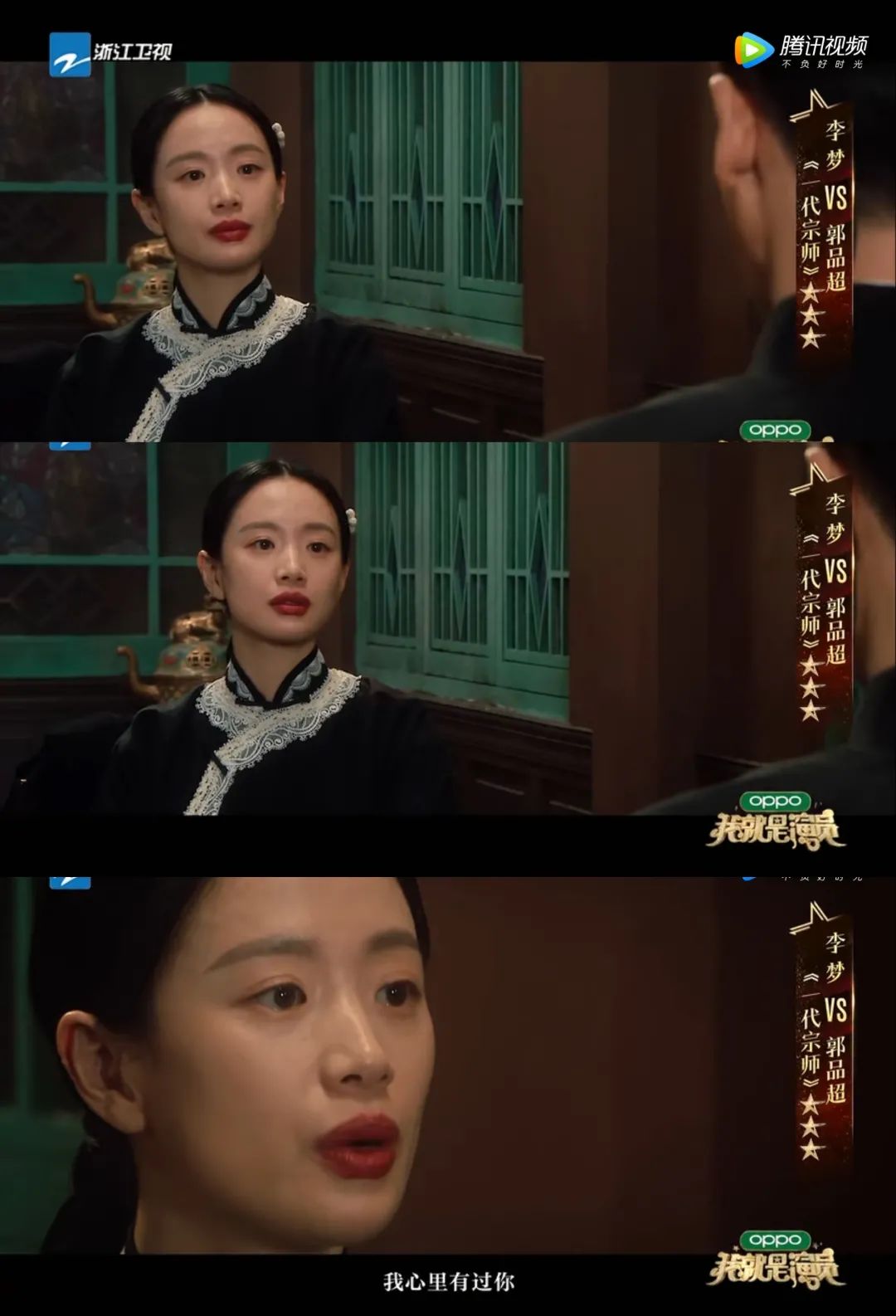 节目里,李梦演《一代宗师》的片段能看出这方面的问题。第一,她没有台词功底,语气毫无抑扬顿挫,甚至没有断句和重点,还不如演偶像剧出身的郭品超;第二,她全然不顾和对手交流,自顾自地沉浸在自己的情绪里一路演下去。