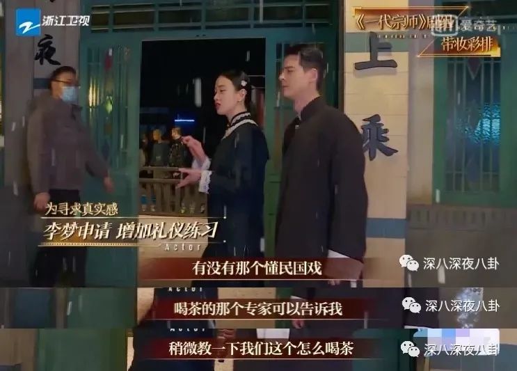 还有一个细节。宫二有个喝茶的动作,彩排时李梦喊人给她找一位懂喝茶的专家教教怎么喝茶。尽管节目播出时字幕打上了“申请”两个字,但画面里李梦喊人没有称呼,没有“请”,用的全是祈使句。其实在时间紧迫的情况下,最有效率的方法是自己用手机百度一下,视频、文字都能找到,十分钟就可以搞定。这个小举动和让道具找苹果如出一辙,在李梦的意识里没有合作,演员是高高在上的,其他人的工作都是来供养这份高贵的。
