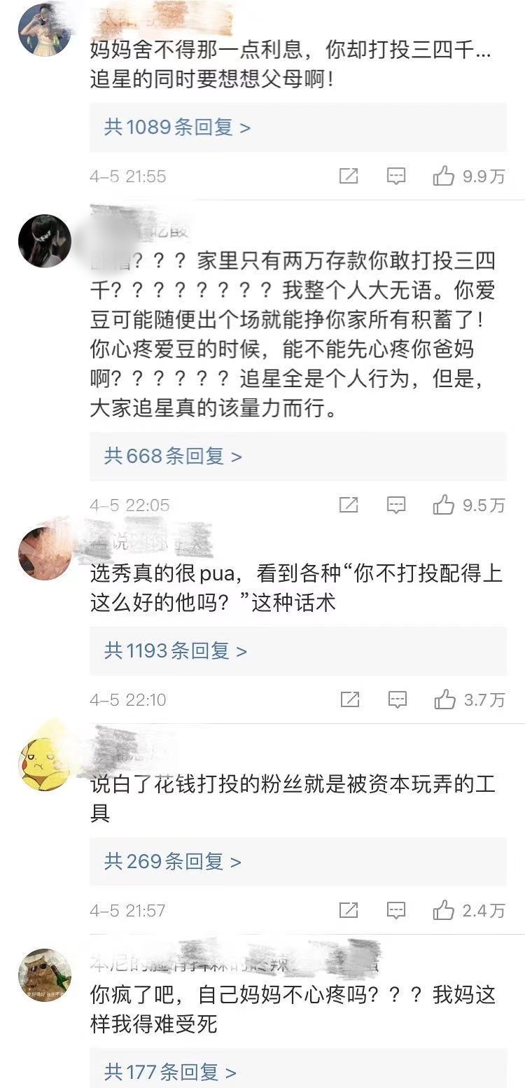 “妈妈舍不得那一点利息,你却打投三四千,追星的同时要想想父母啊!”