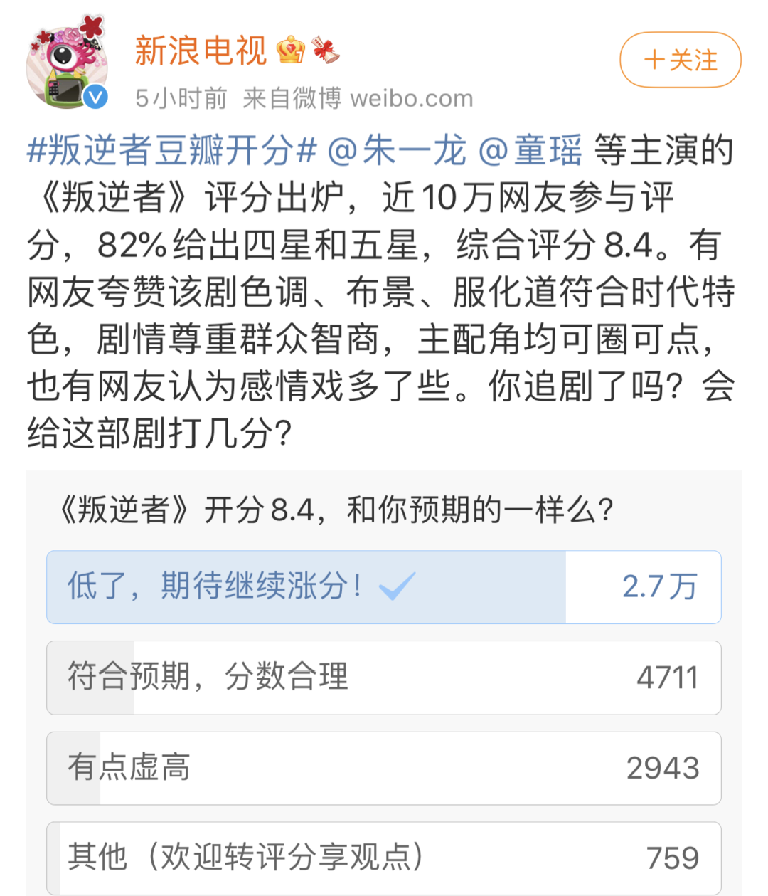 《叛逆者》播出过半,豆瓣开分8.4,观众不答应了。