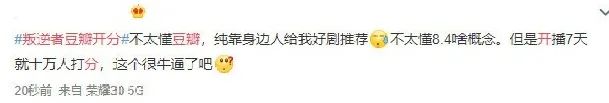 其实这个开分已经不低,但还是不能服众,毕竟开播七天就有10万人打分,评分以四星、五星居多。