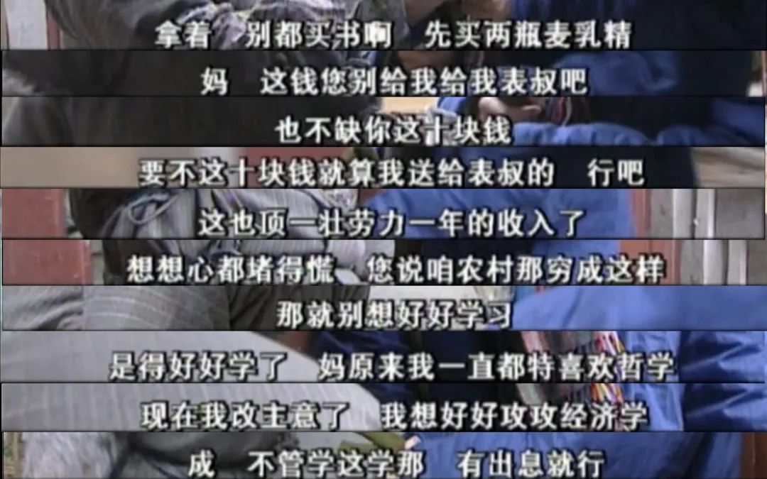剧中有一段文化程度不高的老妈和读大学的儿子之间的对话,表现知识分子的家国情怀,也写实了当时国民经济状况:十块钱=两瓶麦乳精=农村一年壮劳力。
