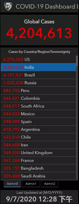 据约翰斯·霍普金斯大学最新统计数据,截至北京时间9月7日12时28分,印度累计确诊新冠肺炎病例超420万例,达4204613例;累计死亡超7万例,达71642例。目前,印度累计确诊数超过巴西,居世界第二。