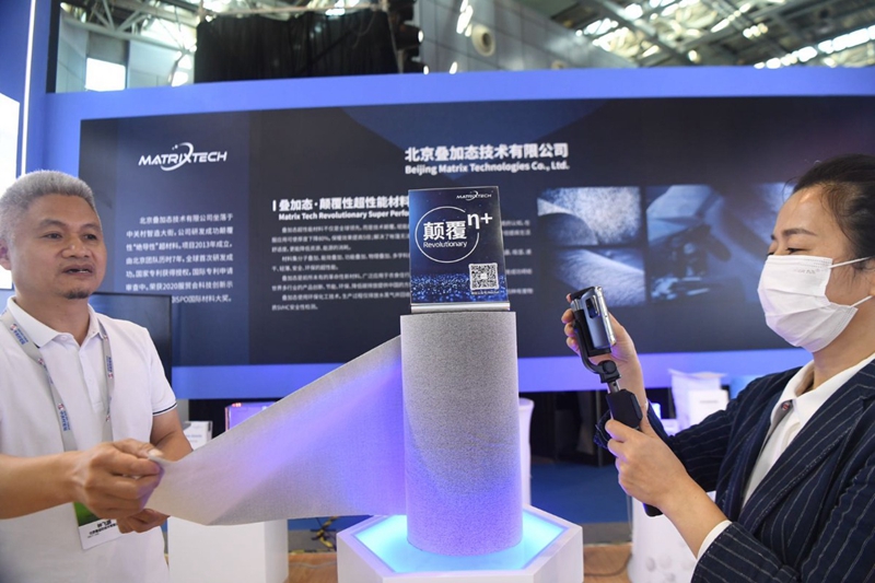 “这什么材料啊,摸起来薄薄的,裹起来还真保暖!”首发产品展区,一卷“布料”吸引了不少人关注。“这是我们历时多年研发的一种新材料,我们把它命名为‘叠加态超性能材料’。”来自叠加态技术公司的首席科学家钟飞鹏告诉记者,这一新材料的原料是石化品,由于它能有效降低导热系统,所以具有隔热、保暖、抗菌、速干、轻薄、环保等特点,不仅可以用来做衣服,还可以广泛应用于建筑保温、汽车顶棚隔热、帐篷等户外装备中。