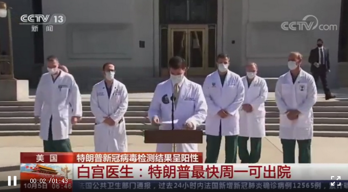 4日,美国总统特朗普的医疗团队在发布会上表示,特朗普的状况“持续改善”。