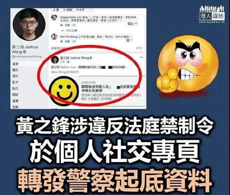 在此之前,黄之锋曾多次对香港警察进行人肉起底。今年9月,其还曾公然上网“起底”法官,施压干扰案件审讯。