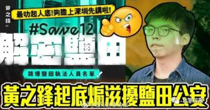 12名港人涉嫌非法偷越国(边)境被广东海警依法截获,仍在保释期内的乱港分子黄之锋却借此大作文章。昨日,黄之锋竟然在社交媒体上公然散布内地警方执法人员的名单、照片和联络方式等资料,意图煽动网民起底滋扰。