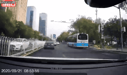 视频显示,21日早8时53分,视频车正在安定路上向北行驶。在经过北土城路口时,突然从右后方斜插进一辆黑色大众轿车,接连3次踩刹车将视频车逼停。
