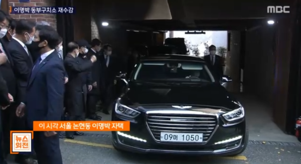李明博乘车离开住宅