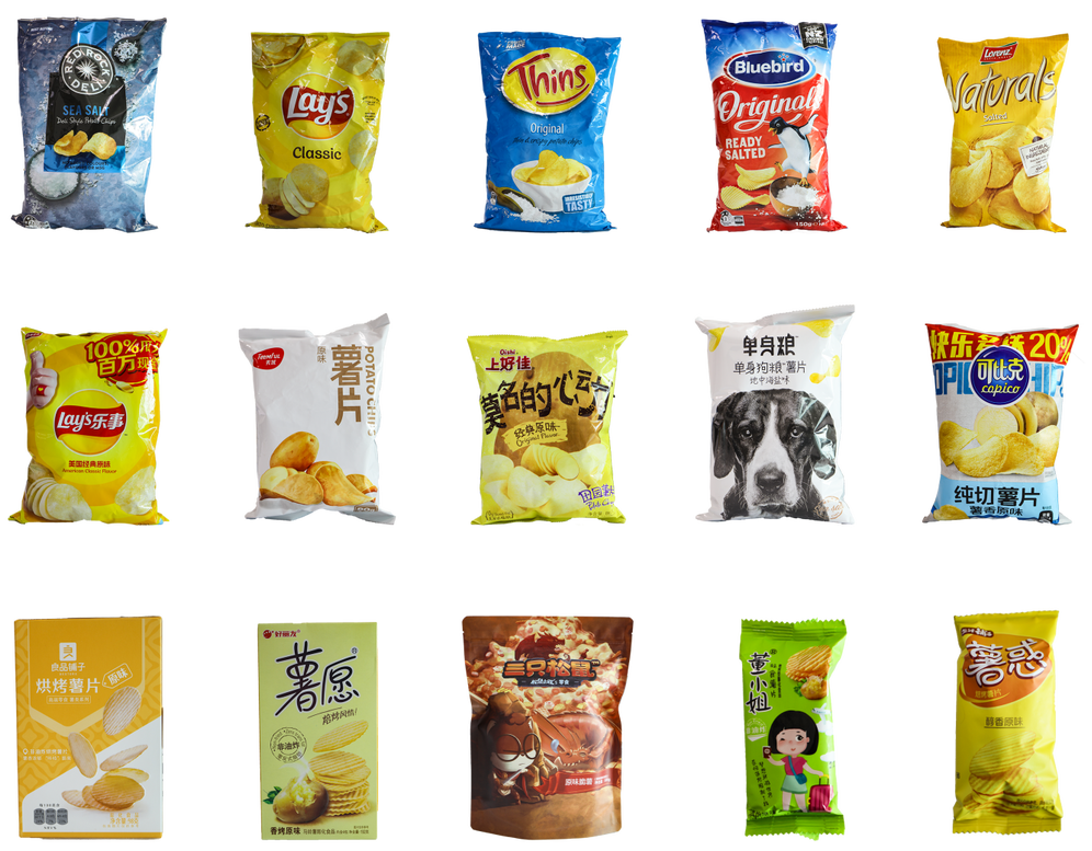 深圳市消委会本次比较试验的样品,选取了油炸型薯片和焙烤型薯片,包括进口油炸型薯片、国产油炸型薯片以及焙烤型薯片各5款。其中5款进口油炸型薯片,产地分别来自美国、新西兰、澳大利亚和德国。
