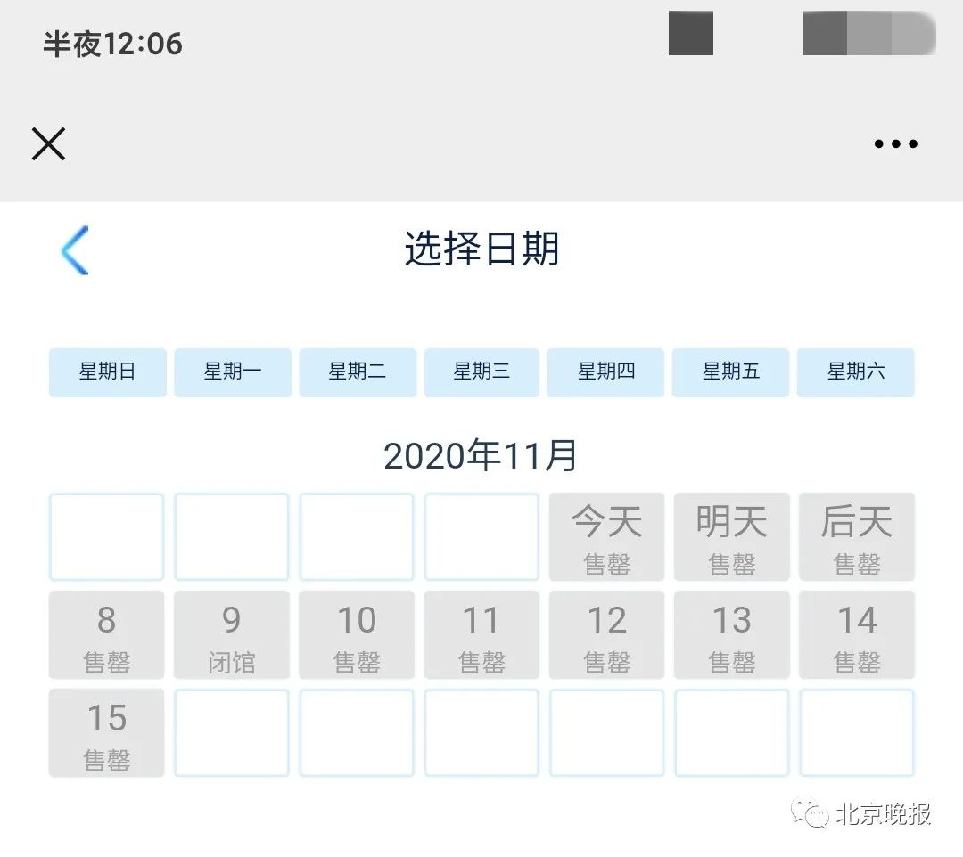 11月4日,进入“故宫博物院观众服务”微信平台,提前10天发售的门票均已“售罄”。故宫门票“上新”时间为每晚零时,11月5日零时,记者再次进入该平台,发现11月15日的余票有29691张,但只过了6分钟,余票就被抢购一空。不少游客感叹,预约故宫门票堪比“双十一”抢货。