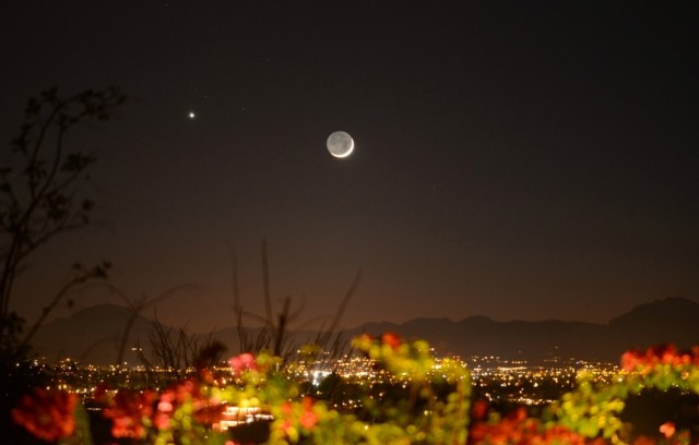 本次“火星合月”的具体发生时间在11月26日凌晨3时47分,届时火星在月球以北4.9度。不过,这时火星和月亮都已沉入地平线下了。