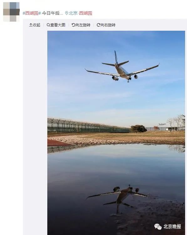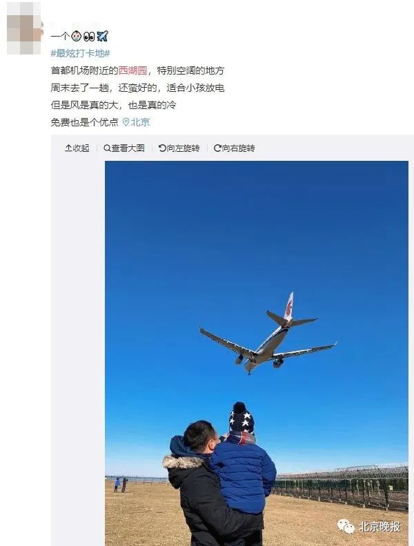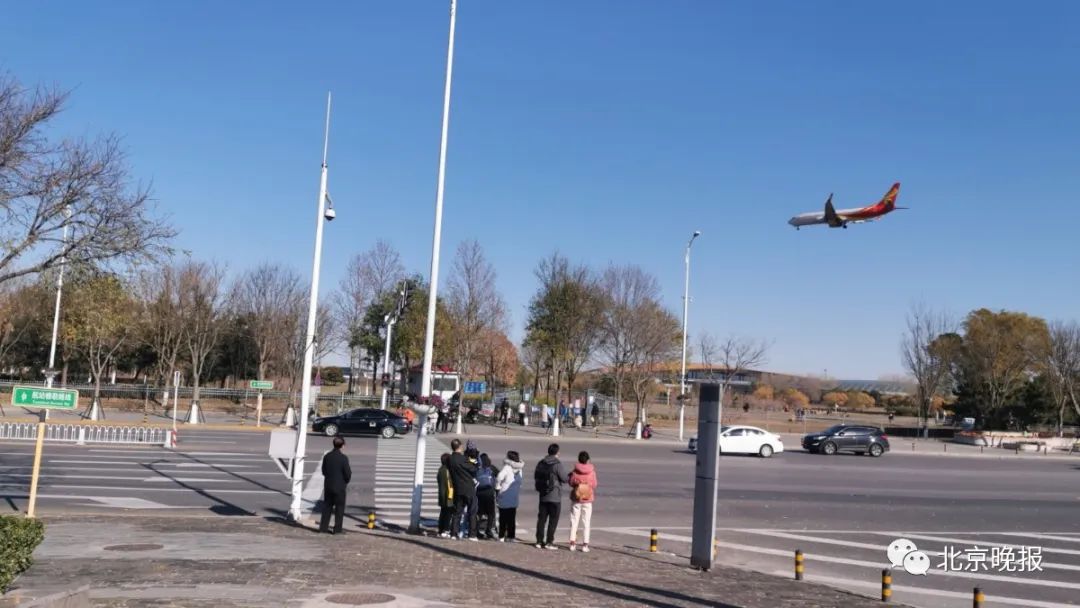 今天上午,在首都机场T3航站楼西侧的西湖园里,不少人都在驻足观看从头顶掠过的飞机,这座公园因为可以近距离观看飞机起落成了网红。