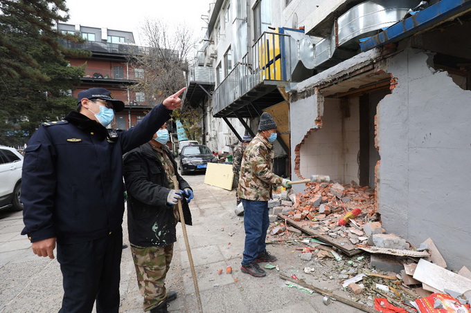 近日,海淀区北太平庄街道对这处15平方米的违法建设进行拆除。由于违建紧挨墙体,不能动用机械设备,只能人工拆除。拆除及渣土清运花了2个小时。