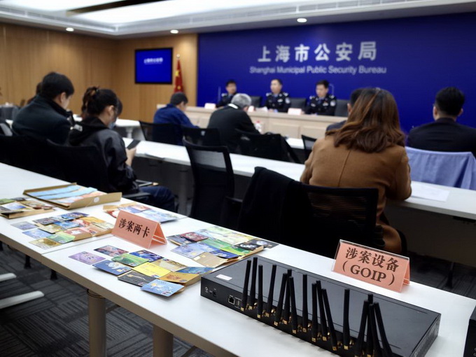 行动中,上海警方在侦查一起电信网络诈骗案时,发现有犯罪嫌疑人在境内架设GOIP设备为境外诈骗分子提供境内话务服务。