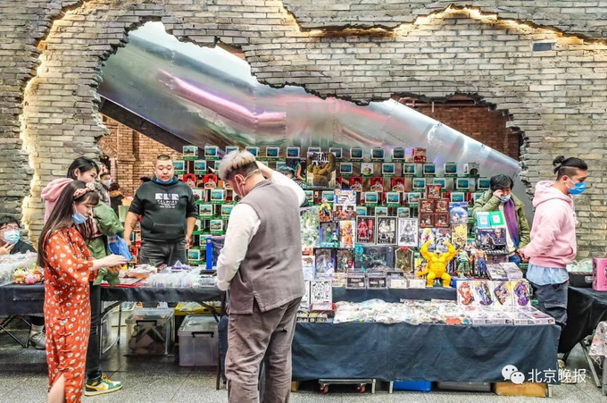 手办、玩具、老旧物品、怀旧电子产品......几十个摊贩分布在各个角落,地上摆着各种老物件儿。狭窄的过道里人们一步一停,蹲在地上淘货。