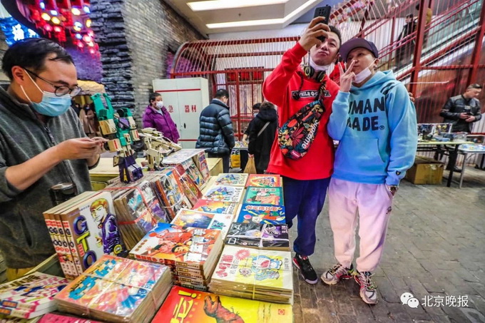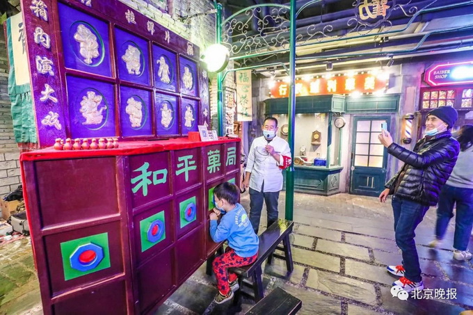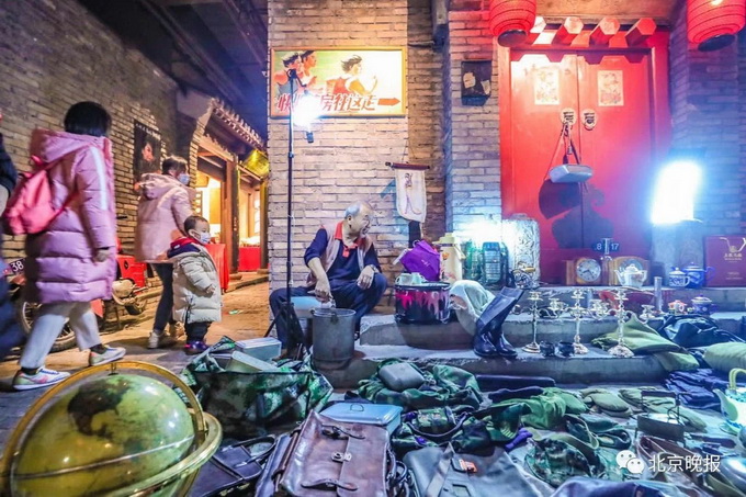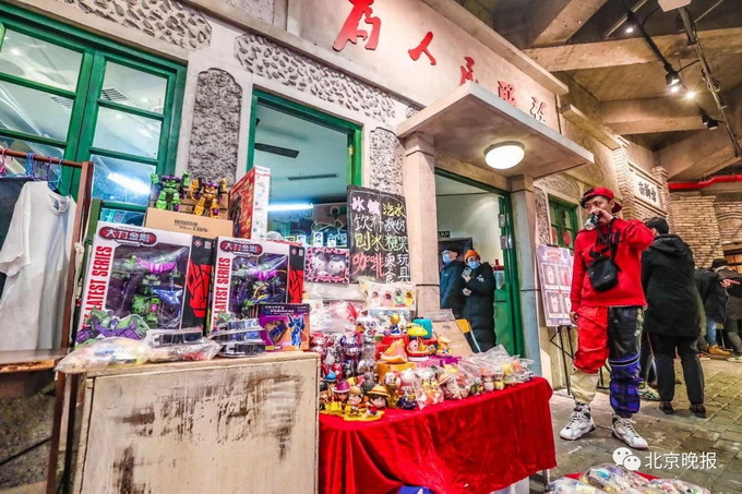 深夜来临,王府井步行街开始变得冷清,但北京百货大楼地下二层的老北京沉浸式体验馆和平菓局却热闹起来,摆满各种小摊儿的深夜市集吸引人们前来淘货。