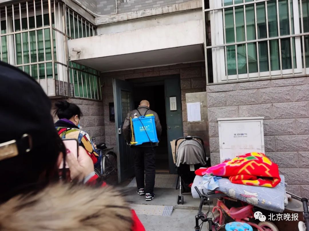 一名工作人员开着电动三轮车运来近50个大编织袋,另一名工作人员背上大桶驱虫剂,手持喷头,对楼道进行消杀。“提前在楼道里喷上药,一会儿清理过程中就不怕从屋子里跑出的蟑螂爬到邻居家里去。”工作人员解释说。