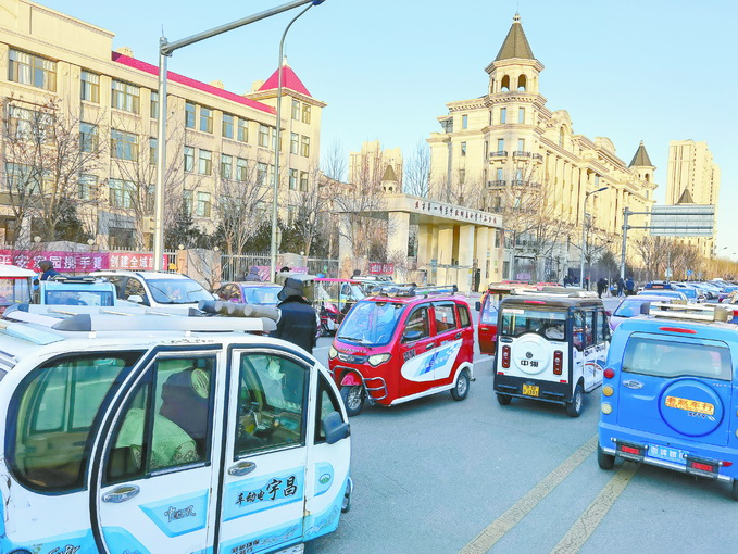 当天下午4时10分,快到放学时间了。一师附小平谷分校门前车流开始明显增多,尤其是在校门口的路两侧和中央都停满各种车辆,除了汽车以外,还有数十辆厢式电动三轮车,不少家长坐在车里等候孩子放学。