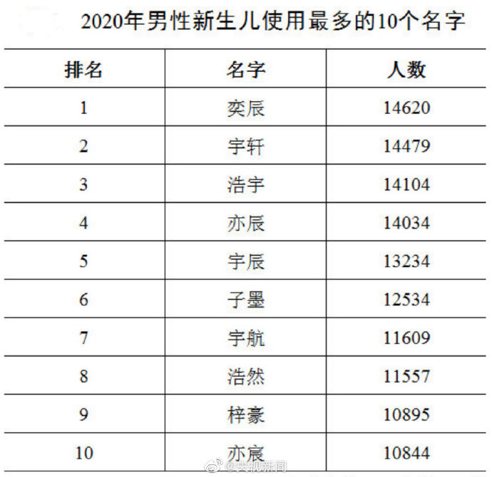 (原标题第一批“20后”李家的娃最多去年新生儿男孩喜欢叫“奕辰”,女孩最爱叫“一诺”)