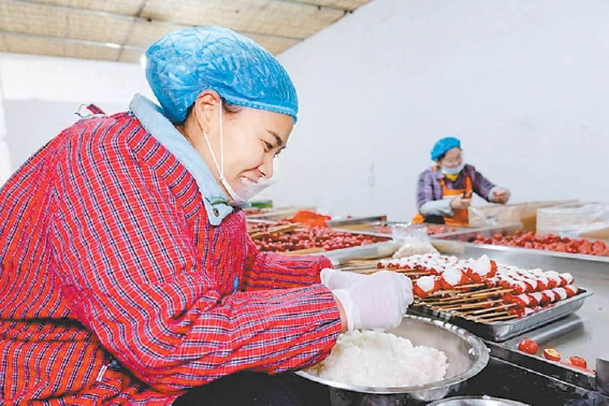 还有村民看准商机,做起冰糖葫芦半成品的加工生意,为城里的冰糖葫芦商户提供山楂和草莓等半成品,日均发货金额能达到2万元左右。城里的商户只要熬好糖浆,趁热淋在收到的半成品上,就能快捷高效地做出冰糖葫芦,节约了大量制作时间。