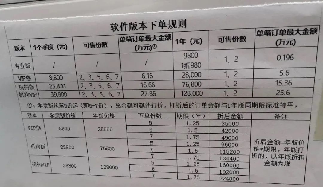 公司不同档的会员收费表。龙岗警方 供图