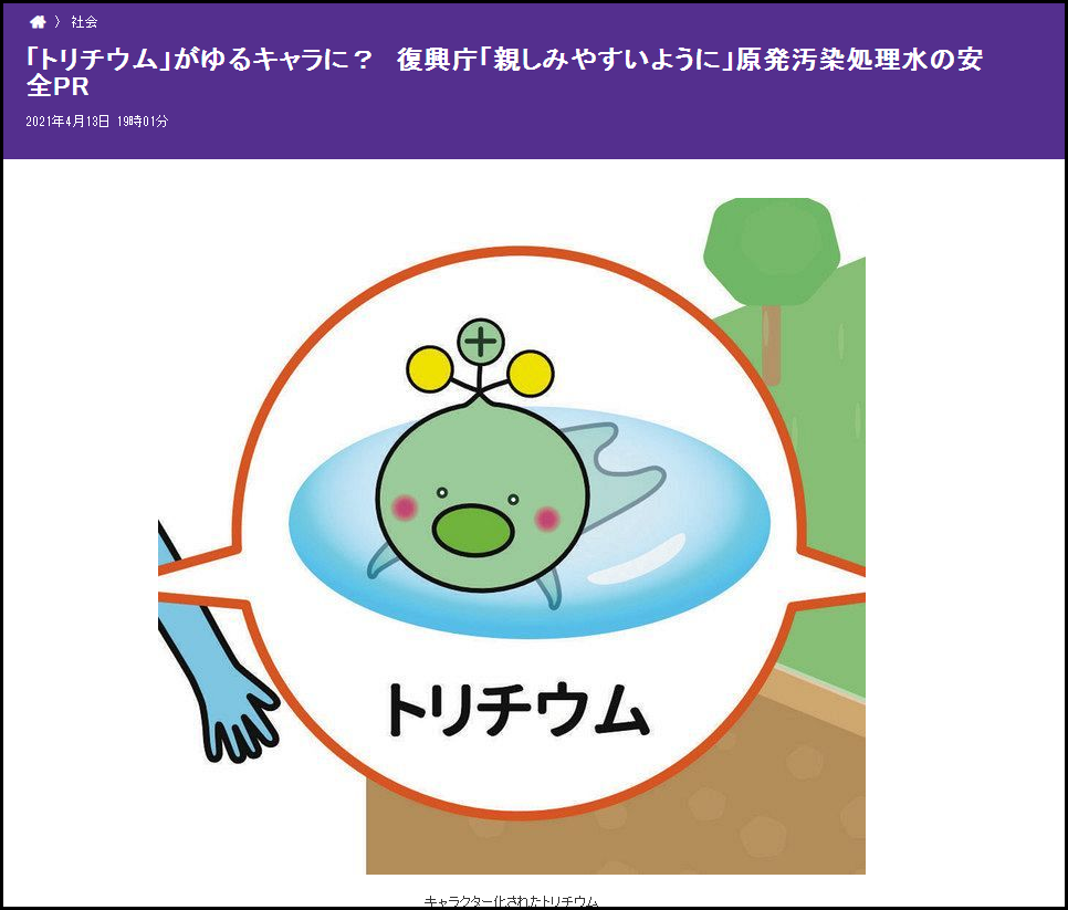 据《东京新闻》昨天(4月13日)报道,日本复兴厅将福岛核废水中难以过滤的放射性核素氚“吉祥物化”,目标是“为氚创造亲近感”(親しみ安い),并宣传核废水的安全性。