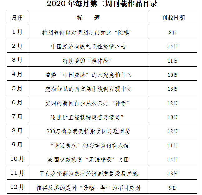这种表达背后的情绪,或许能反映出当前一些人的直观感觉。但这样的话音从一个长期标榜西方价值观的美国媒体口中说出来,总令人感觉有些弦外之音。毫无疑问,肆虐全球的新冠肺炎疫情仍是人类当前最为严峻的挑战,疫情防控的失败,也导致美国成为世界疫情“震中”与防控“短板”。但这种“最糟一年”的论调背后,更多还是基于自身失败的哀叹,而并非是对国际秩序走向的反思。2020年虽然艰难,但无法抹去,反而应该发人深省。