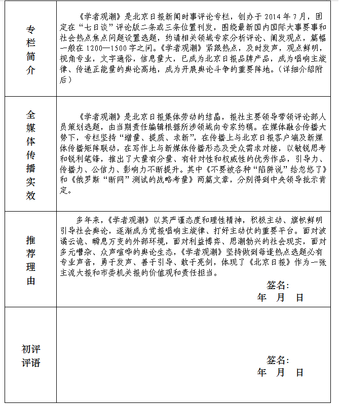 从实践成效看,读者普遍反映《学者观潮》文章有味道、有内涵,展现出特有的理论深度、思想锐度、情感温度,对当今社会主流舆论起到了积极的引导作用。特别是在媒体融合的新的传播趋势下,专栏坚持“增量、提质、求新”,在传播上与北京日报客户端及新媒体传播矩阵形成呼应,在写作上与新媒体传播形态及受众需求形成对接,以敏锐思考和锐利笔锋,推出了大量有分量、有针对性和权威性的优秀作品,传播力和影响力不断扩大。与此同时,北京日报评论部通过严格把关、积极筛选,专栏已积累起100多人的专家学者队伍,关注领域涵盖国际关系、大国外交、法治建设、社会心态等多个方面,成为北京日报重要的外脑和智库。