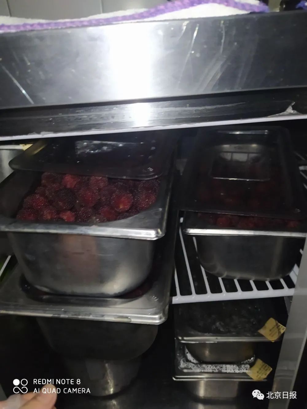 记者在“奈雪的茶”西单大悦城店后厨拍摄的水果堆放处。