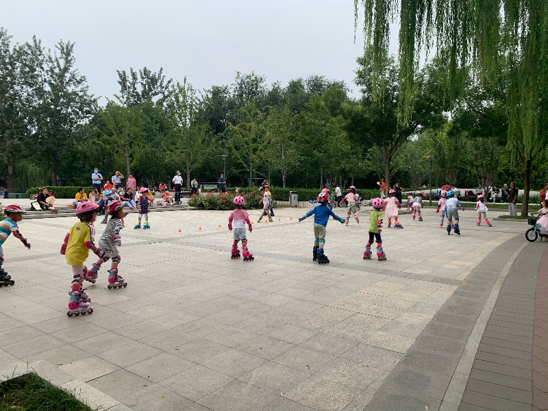 昨天下午5点,记者在现场看到,背着轮滑鞋的家长和孩子陆续来到定慧公园。公园里一个约三百平方米的小广场里,摆了一圈轮滑训练桩,七八个孩子正在其中穿梭滑行。没一会儿,穿着轮滑鞋的孩子增至20多人,整个小广场被不断快速滑行的身影占得满满当当。一位正在给孩子换鞋的家长说,他花了3000元让孩子在这家培训班学轮滑,已经学了很长时间。“现在人还算少,多的时候有三四十人。”孩子们到齐后,教练换上轮滑鞋,滑入场地开始正式训练,这片公共广场直至晚上7点,都是“轮滑专用场地”。