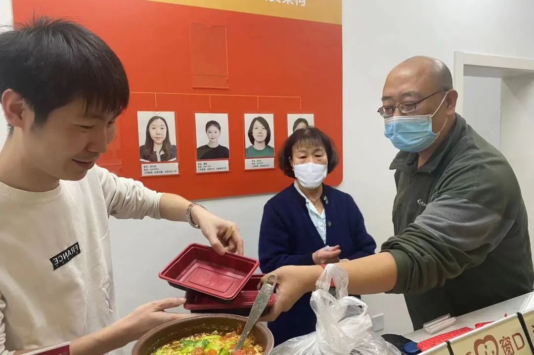 疫情发生以来,全体社工日夜坚守岗位,舍小家为大家,吃住都在社区,辖区的居民看在眼里,急在心上。为让工作人员吃上一口家常饭,潘大姐精心准备了美味的鸡蛋面,社区工作人员吃着手里的汤面,暖在嘴里,甜在心头。