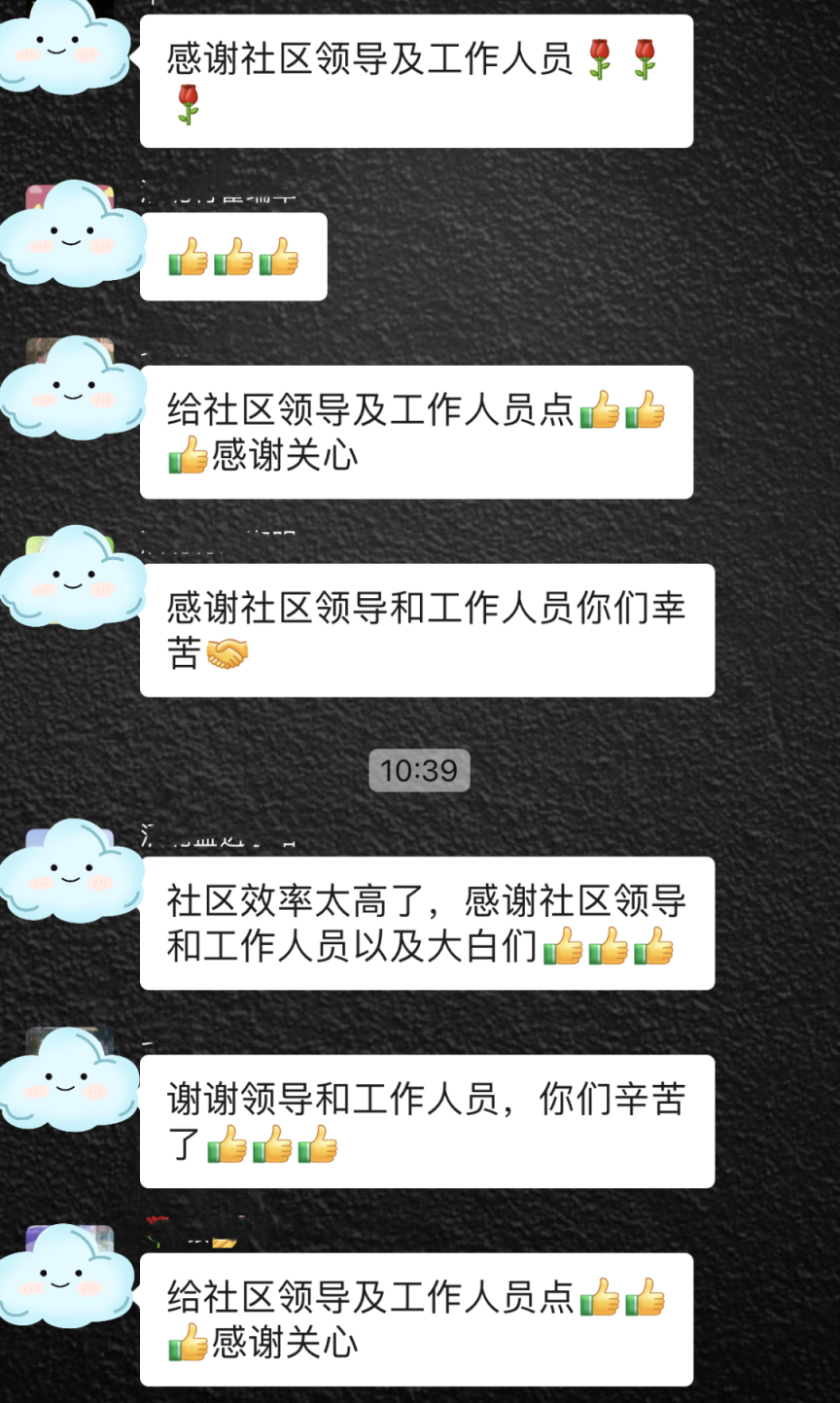 居民们一声声“谢谢”、“你们辛苦了”......字里行间里都传递了居民对抗疫一线工作者的关心关切。面对繁重的防控工作,他们熬更守夜、三餐不定更是常态,有时到了饭点都顾不上吃饭,有时匆匆随便吃几口,就又投入到眼前急需处理的事务中。尽管遇见各种困难,但他们仍然意志坚定。