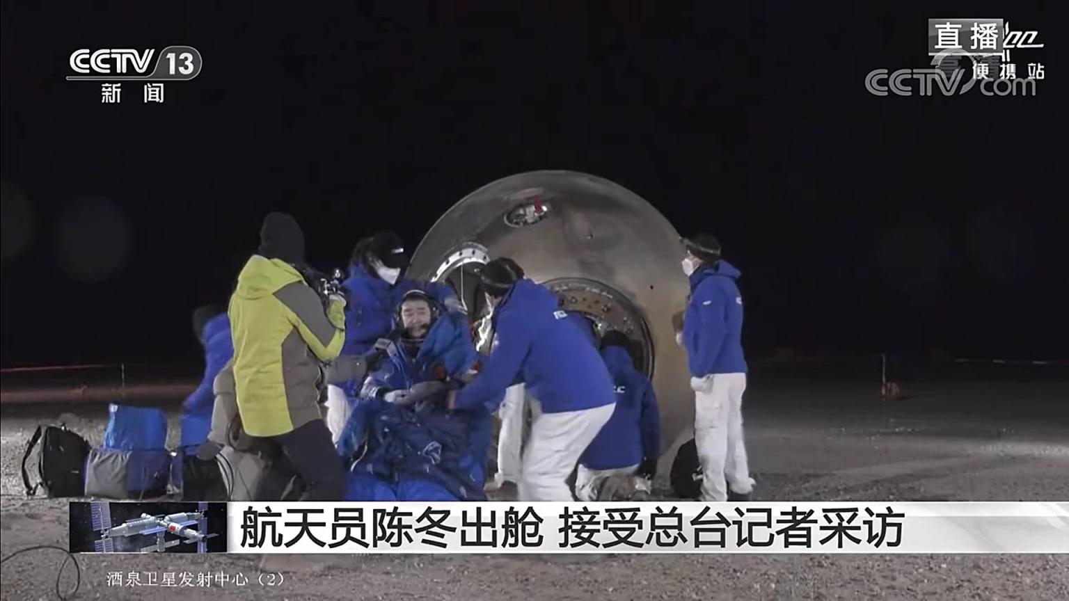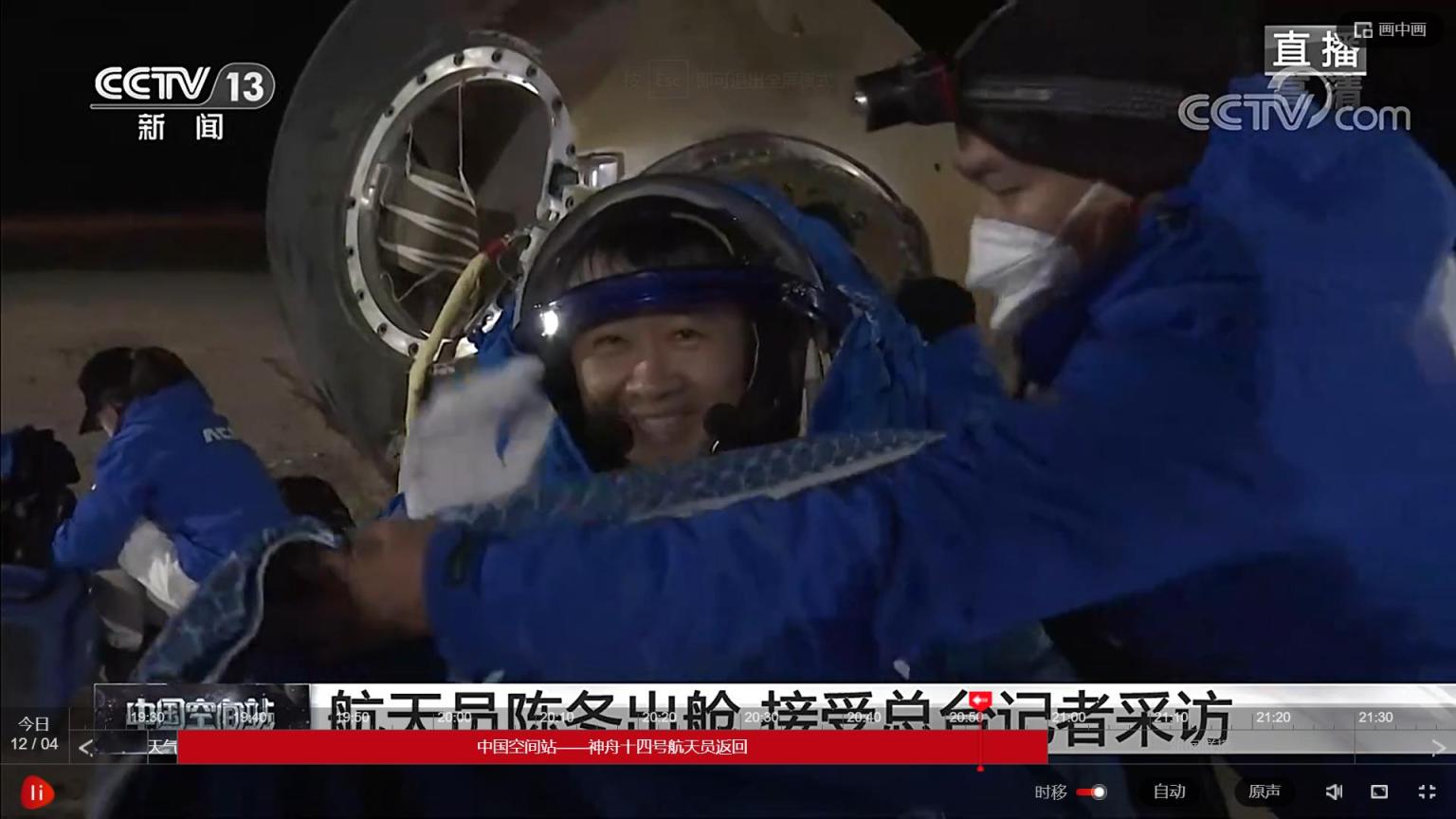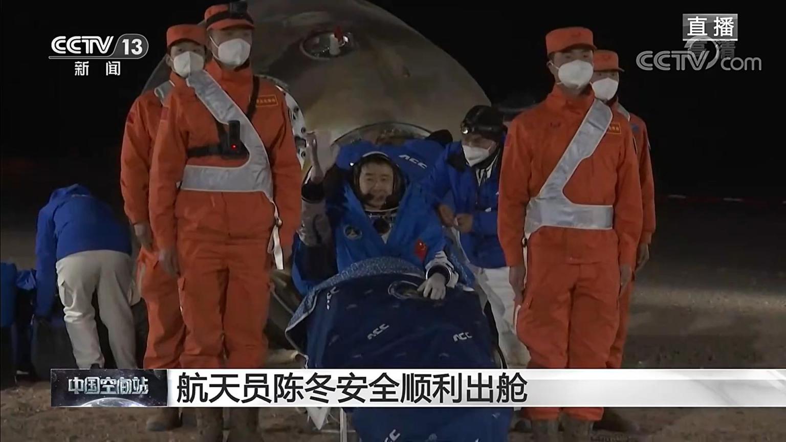 北京时间2022年12月4日20时09分,神舟十四号载人飞船返回舱在东风着陆场成功着陆,现场医监医保人员确认航天员陈冬、刘洋、蔡旭哲身体状态良好。“检查作业的爸爸”回来了!陈冬接受采访说,我们像流星一样回到祖国怀抱,我为伟大祖国感到骄傲。