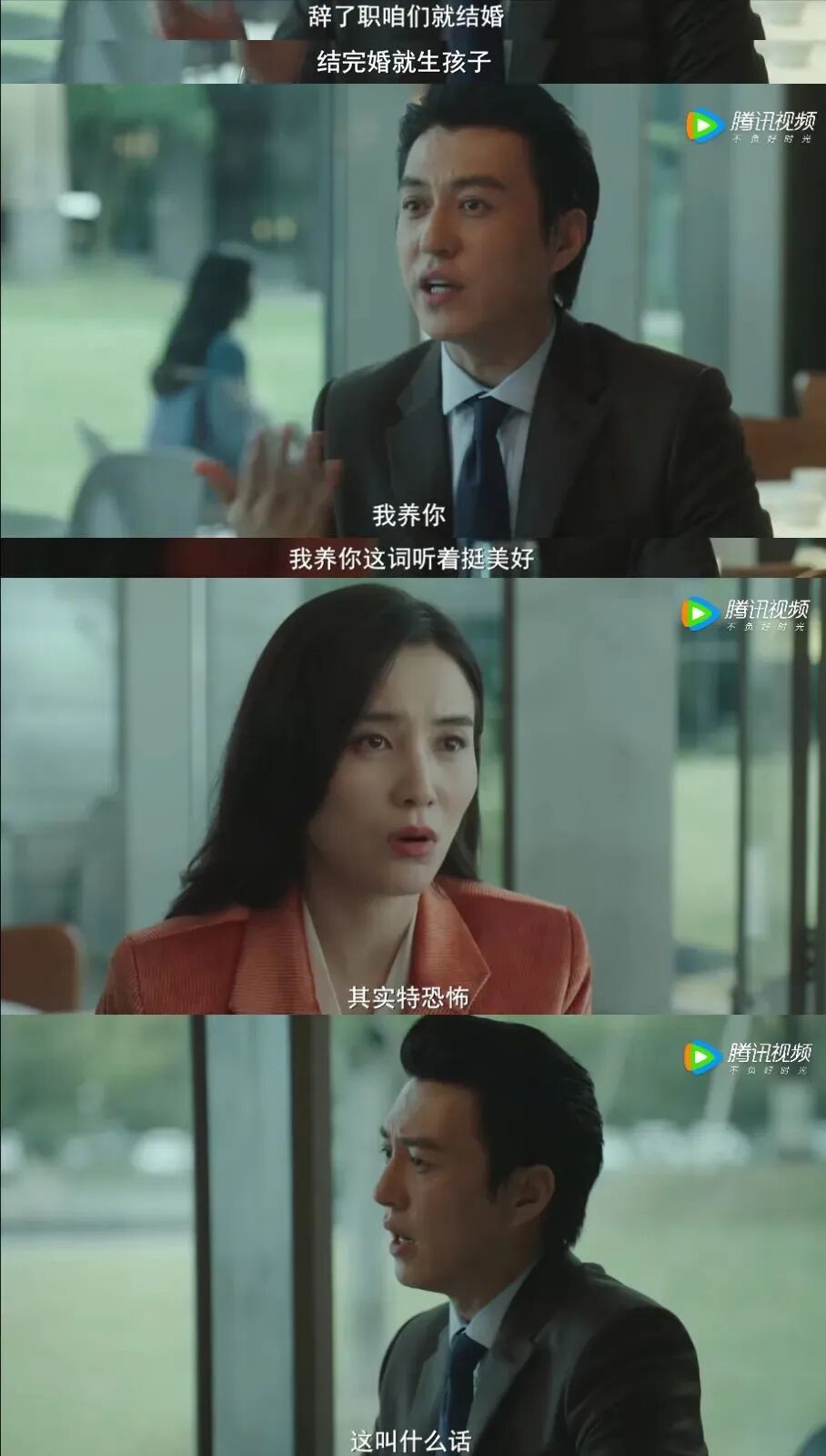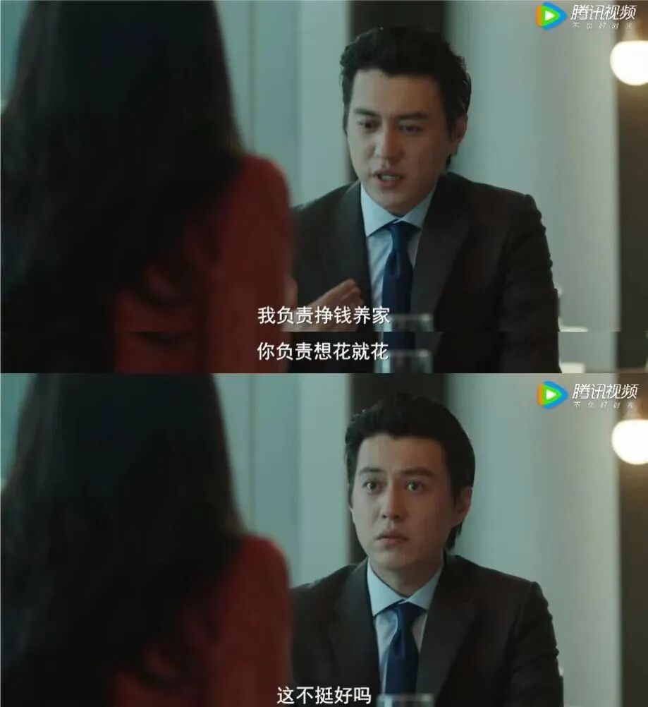 逻辑上没毛病,可被剧情挤到这里,配上靳东一贯运筹帷幄的Bking表情和手势,是女的都会在心里暗骂一句:老娘凭什么靠你养?
