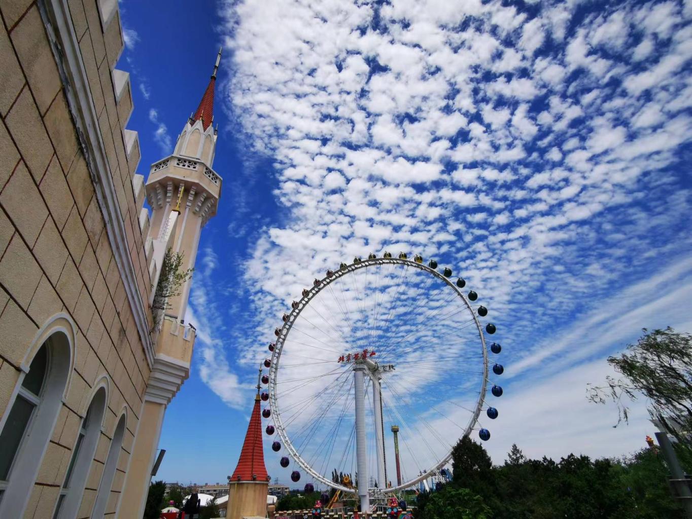 7月4日,雨后的京城再现蓝天白云。石景山游乐园标志性建筑摩天轮在蓝天白云的映衬下显得更加美丽,成为市民拍照打卡的好地方。