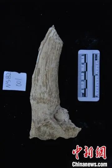 2023年5月下旬到6月中旬,工作人员在怀来盆地新发现的旧石器和动物化石地点采集的羚羊角化石。牛东伟摄