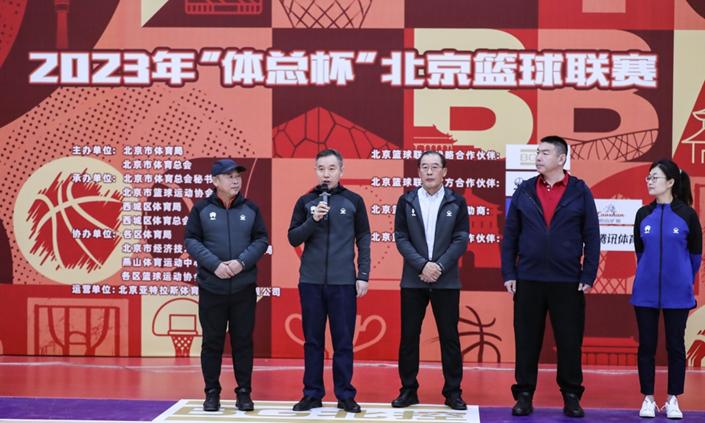 北京市体育总会秘书长张国成、北京市篮球运动协会主席孙国华、北京市篮球协会副主席田士合、北京北控篮球俱乐部副总经理杨海深、北京北控篮球俱乐部商务总监赵进出席了赛事开幕式。孙国华在致辞中表示,北京篮球联赛是重点打造的北京品牌赛事,代表着北京群众篮球的最高水平,是北京选拔全运会篮球群众组比赛人才的重要平台。希望各参赛队在比赛中能展现队伍及各区的良好形象,并预祝赛事圆满成功。