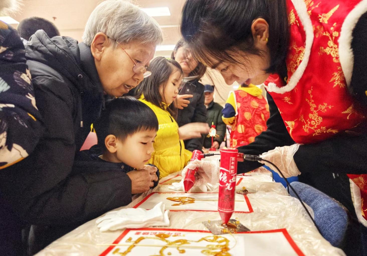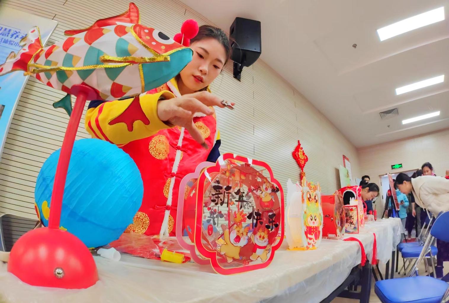 在民俗互动体验区,猜灯谜、画糖画、投壶、套圈、制花灯等传统民俗游艺活动吸引了居民互动体验,在欢乐喜庆的氛围中,共庆元宵佳节。