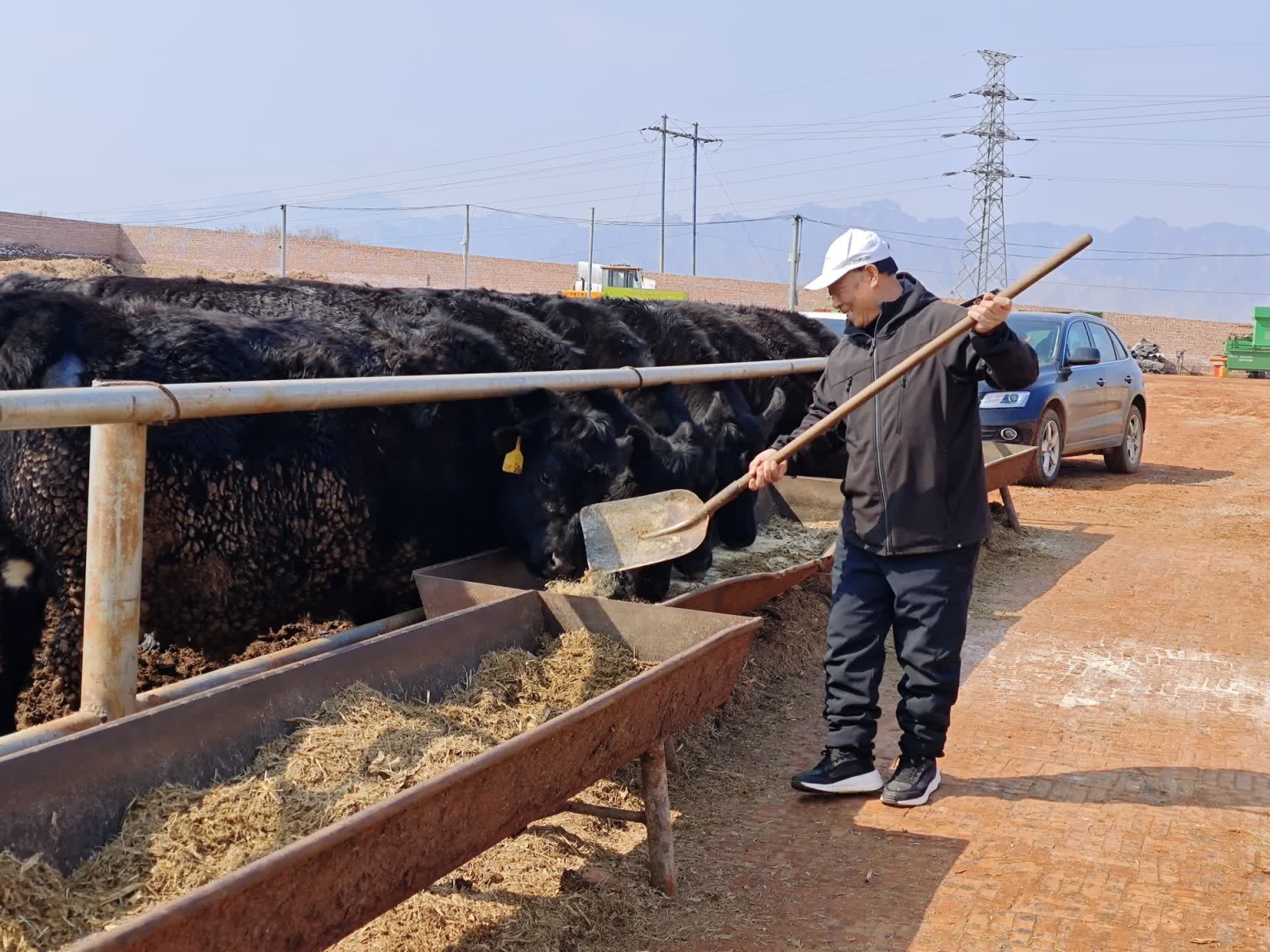 “哞哞哞……”3月6日,保定易县伊馨源“博士农场”里,养牛人马臣用铁锨铲上一些饲料在牛场喂牛。十几头大黑牛身体壮硕,听到这急促的呼喊声,争抢着到食槽里舔食。看着牛儿们胃口大开,马臣心里美滋滋的。顺手从食槽里抓出一把饲料给记者看,“多亏了北京来的苏教授,经过指导,科学配比后的饲料大大提高了喂养效率。”