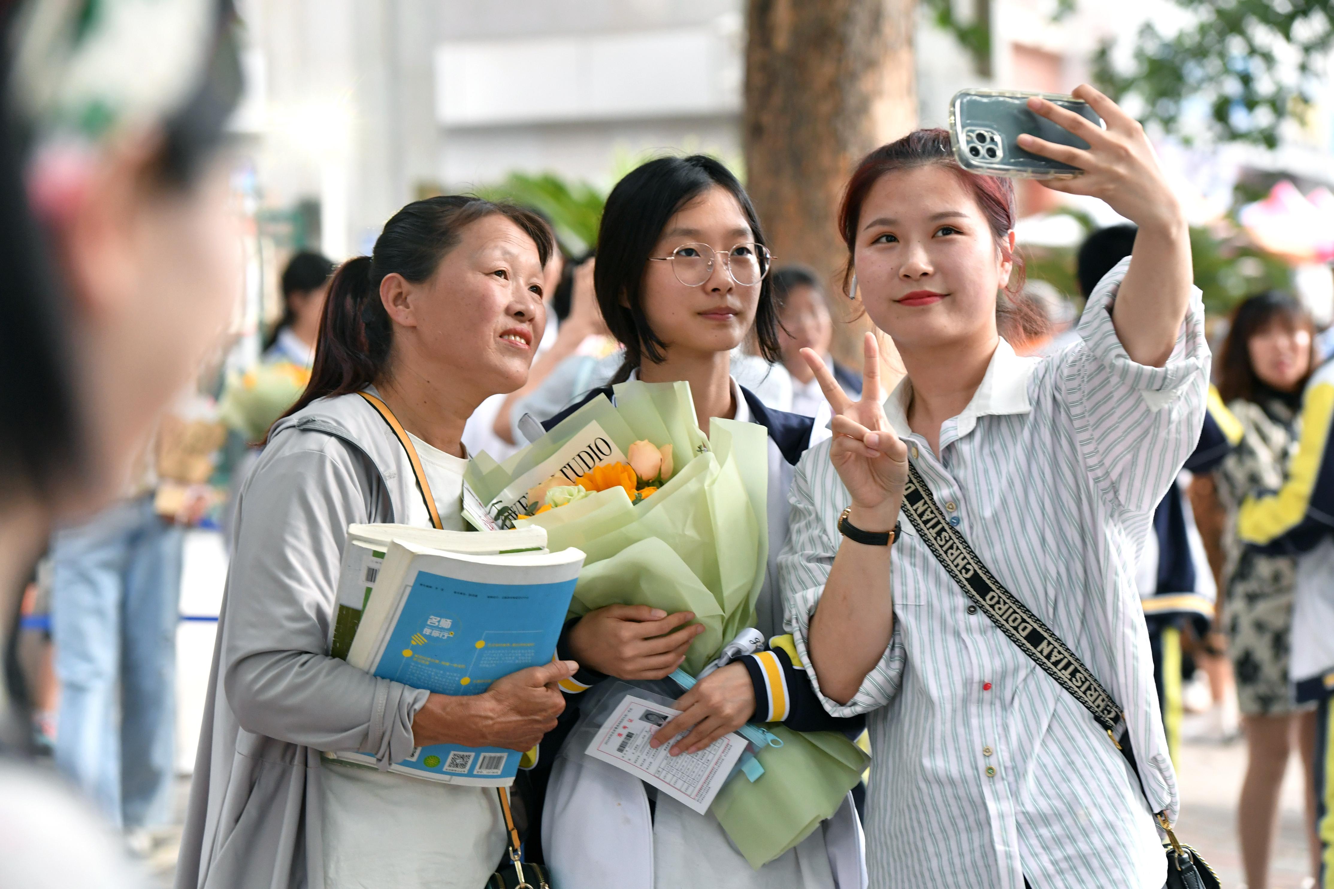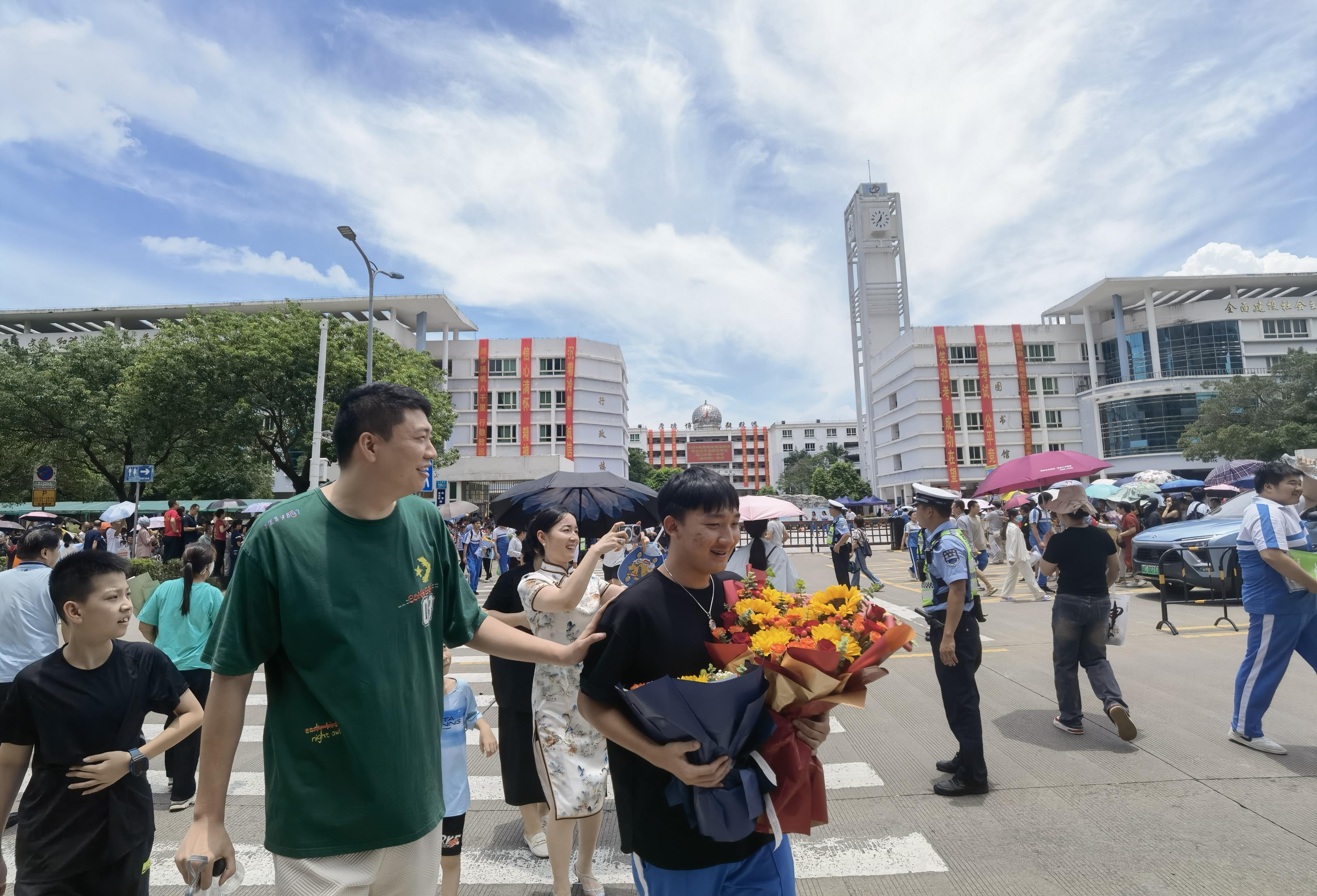 考生们从考场鱼贯而出,家长们送上鲜花和拥抱,大家合影留念,记录下青春岁月里的难忘时刻……