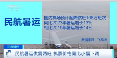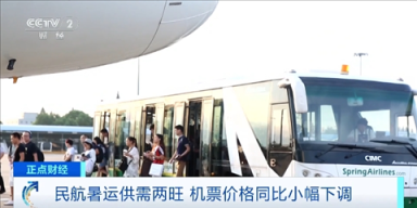 某航班数据平台品牌公关负责人 龚一亭:今年暑运整体的运力明显恢复,票价有一定程度的回落。国内航线的票价同比下降达到7%至8%,国际航线下降10%左右。